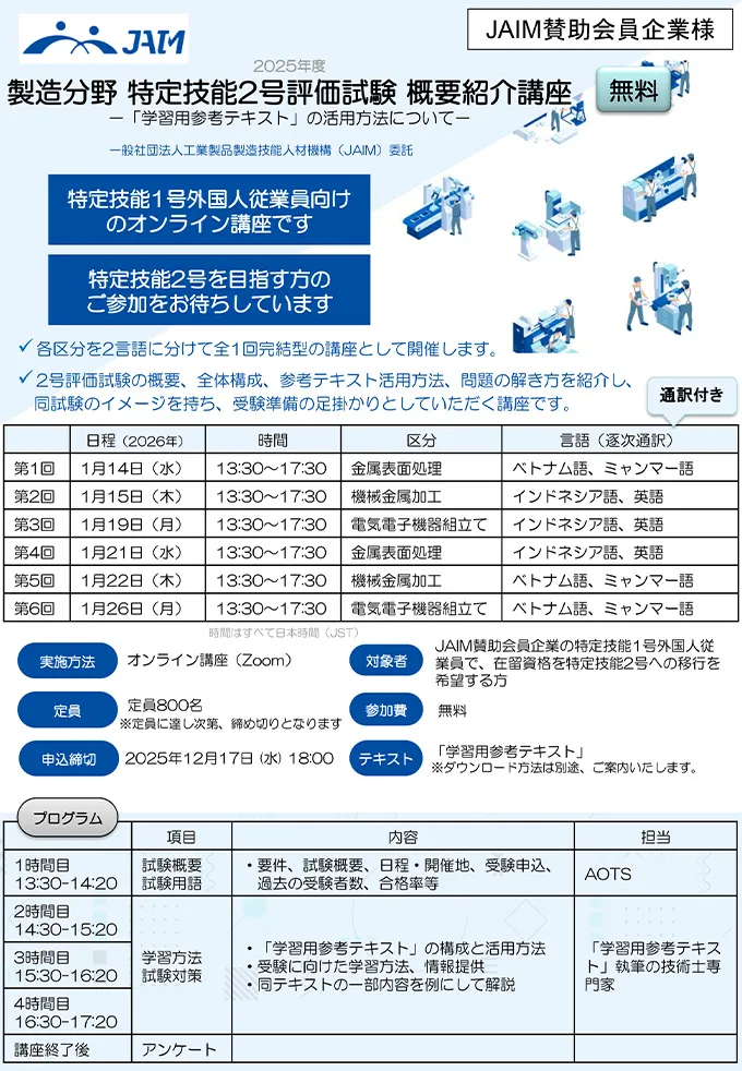 - 2025年度製造分野特定技能2号評価試験 概要紹介講座